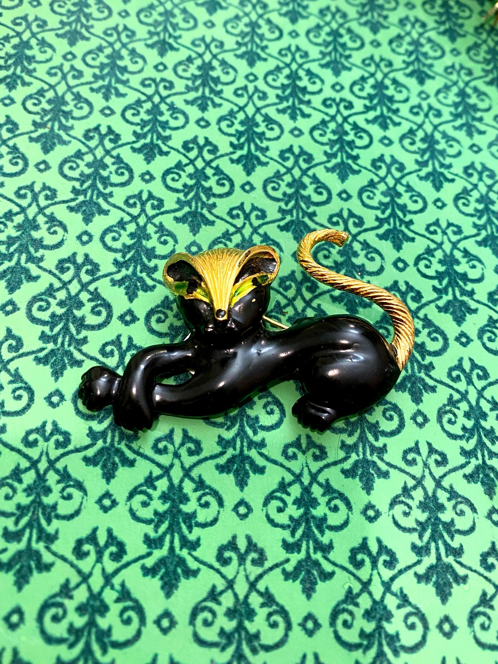 For vintage cat lovers 😻. Gold plated vintage 1950s cat brooch with black enamel, hand painted.