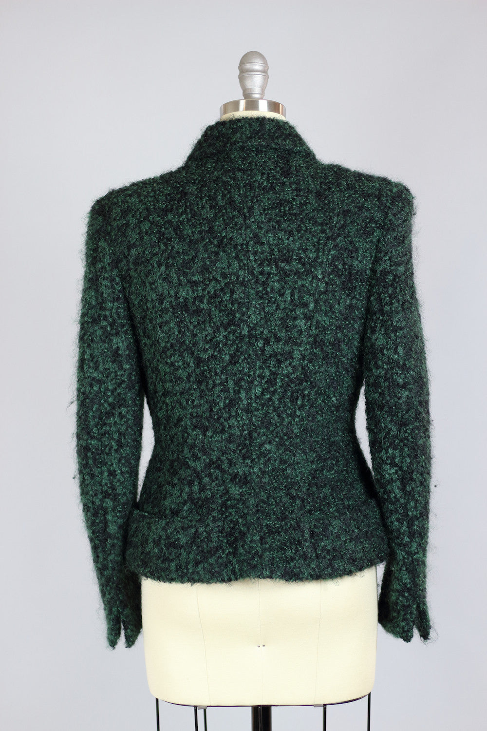 This is truly a fabulous jacket! It is such good quality, made from 100% silky soft mohair wool. It's also fully lined with silk. The buttons are made of glass and shell. They just don't make them like this anymore! Vintage from the 1940s - this little jacket is such a beautiful piece to own and wear for plenty of falls and winters to come.